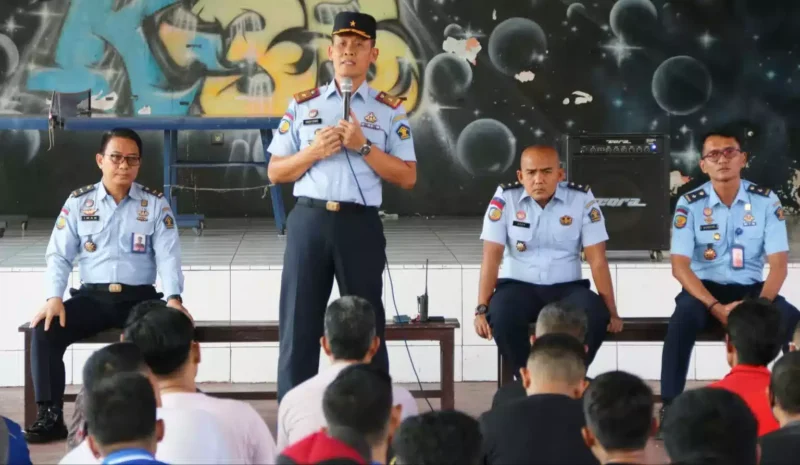 Terasmedia.co Cirebon – Kalapas Cirebon, Kadiyono, memberikan pengarahan kepada warga binaan dengan topik yang dibahas mengenai sosialisasi pencegahan gangguan keamanan dan ketertiban di area lapangan olahraga lapas.