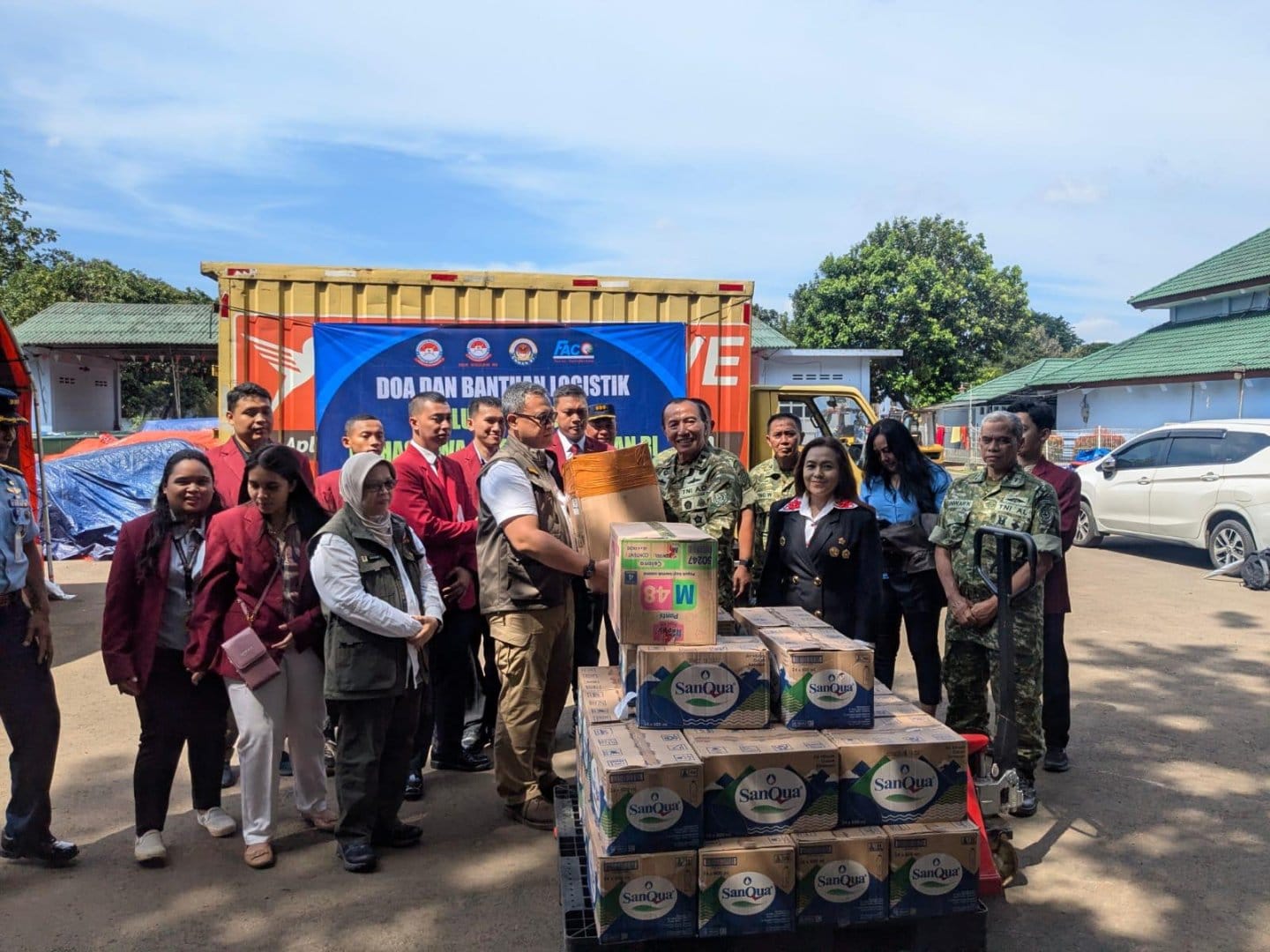 Penyerahan bantuan dilaksanakan pada Senin 22 Desember 2025, melalui Posko Badan Nasional Penanggulangan Bencana (BNPB) yang berlokasi di Pangkalan TNI Angkatan Udara Halim Perdanakusuma, Jakarta.